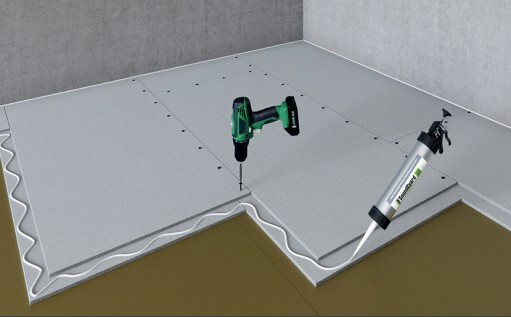 В процессе монтажа элементов пола KNAUF Суперпол места соединения листов заполняются звукоизоляционным герметиком SoundGuard Seal. Листы соединяются между собой саморезами длиной не более 20 мм.