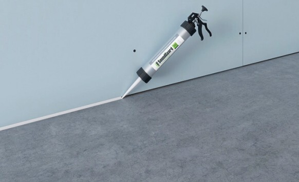 Между торцами листов гипсокартона и поверхностями пола, стен и потолка остается зазор 3 – 5 мм, который заполняется герметиком SoundGuard Seal.