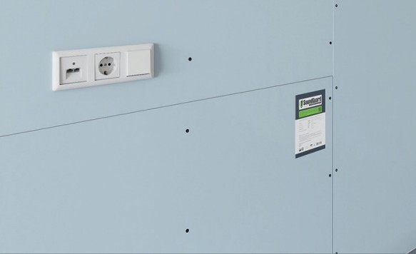На тыльную сторону звукоизоляционного гипсокартона SoundGuard Gipsofon укладывается звукоизоляционная мембрана SoundGuard Membrane 3,9 S.