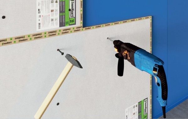 Звукоизоляционные панели SoundGuard Premium устанавливаются вразбежку и крепятся к стене с помощью акустических дюбель-гвоздей SoundGuard DA-Р.