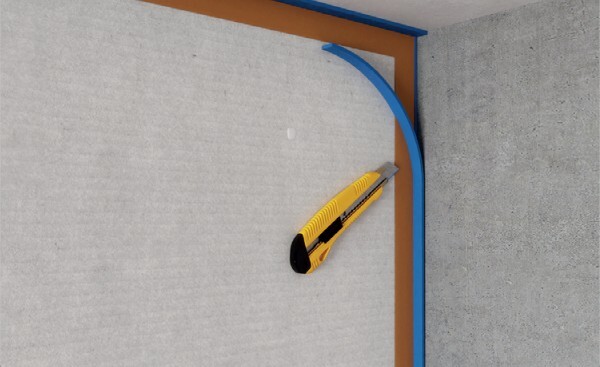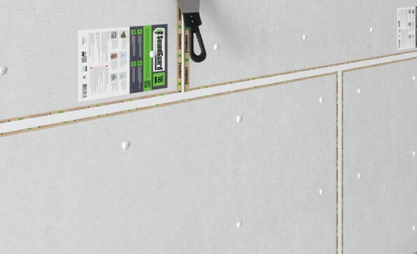 Подложка заводится на потолок, пол и соседнюю стену на величину толщины устанавливаемых звукоизоляционных панелей SoundGuard.