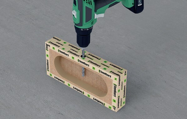 После монтажа звукоизоляционного гипсокартона Gipsofon ПЛУК в нем коронкой просверливается отверстие в месте установки подрозетника.