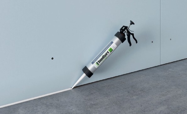Между торцами листов гипсокартона и поверхностями пола, стен и потолка остается зазор 3-5 мм, который впоследствии заполняется виброакустическим герметиком SoundGuard Seal.