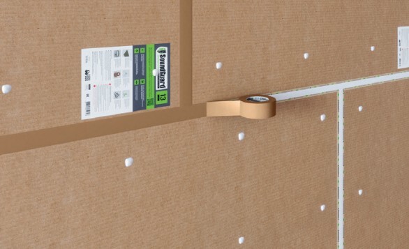 Швы между звукоизоляционными панелями дополнительно проклеиваются клейкой лентой SoundGuard Tape.