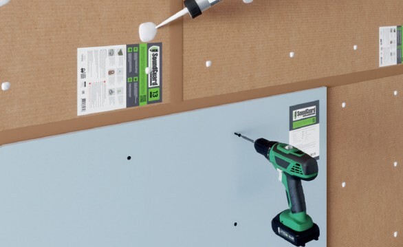 Звукоизоляционный гипсокартон Gipsofon ПЛУК крепится к поверхности панелей саморезами SoundGuard ГП 3,9х25 с усилением соединения при помощи точечного нанесения герметика SoundGuard Seal.